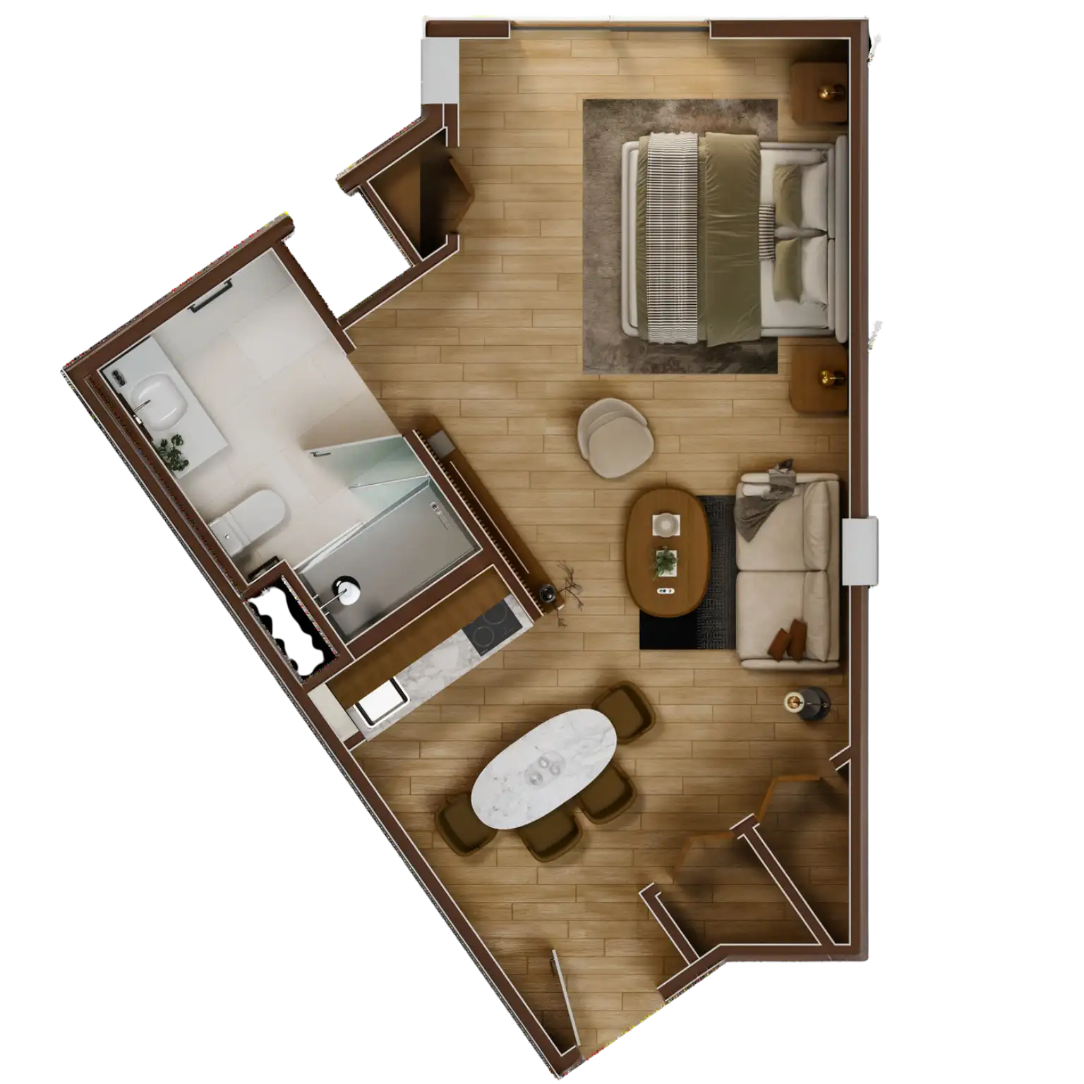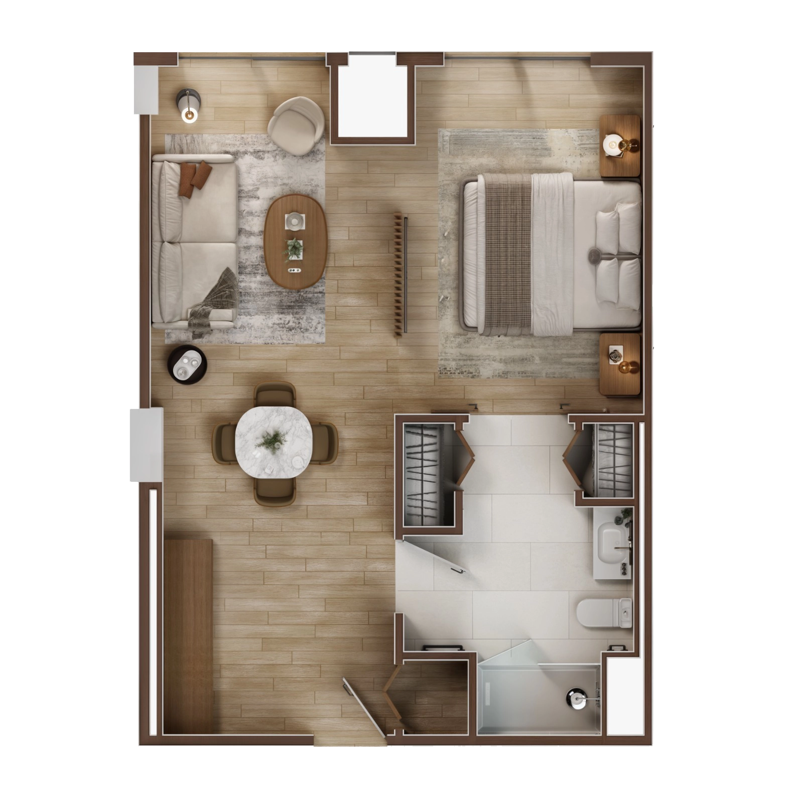 Departamentos estudio enfocados a parejas jóvenes que buscan disfrutar y experimentar la nueva cara de Orlando. Nos centramos en la practicidad, el espacio y la comodidad